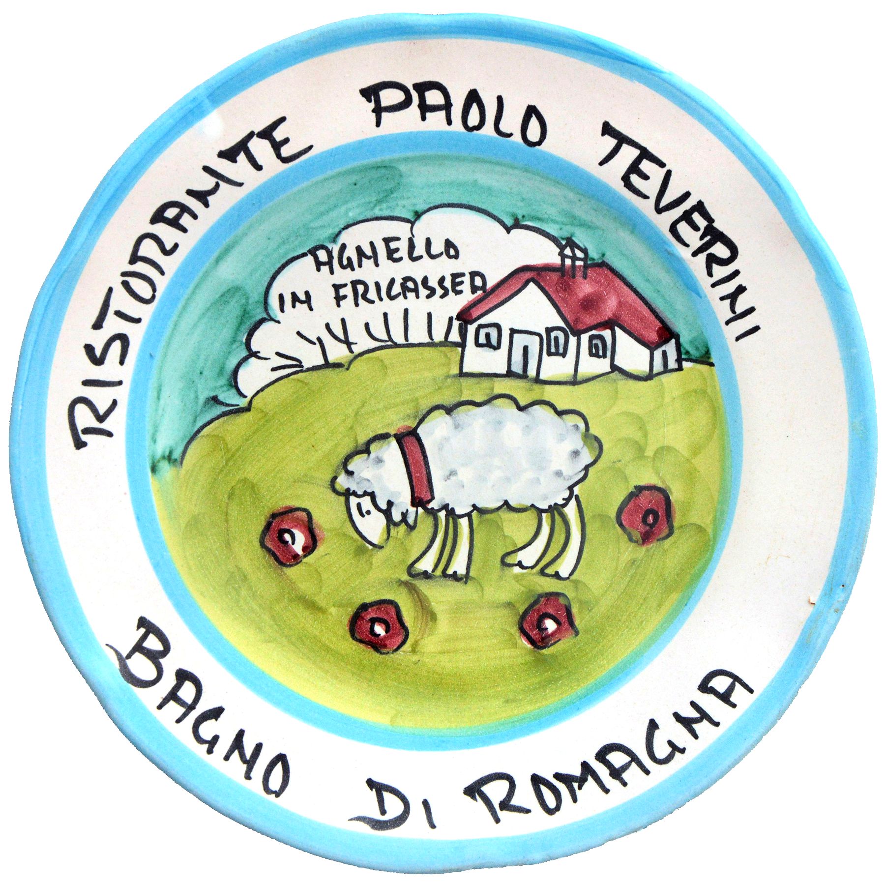 * Agnello in fricassea apr. 86 - mag. 90 I piatti di presentazione hanno il cielo verde ramino e i fiori rossi con interno bianco, successivamente fiori e pecora sono semplificati.