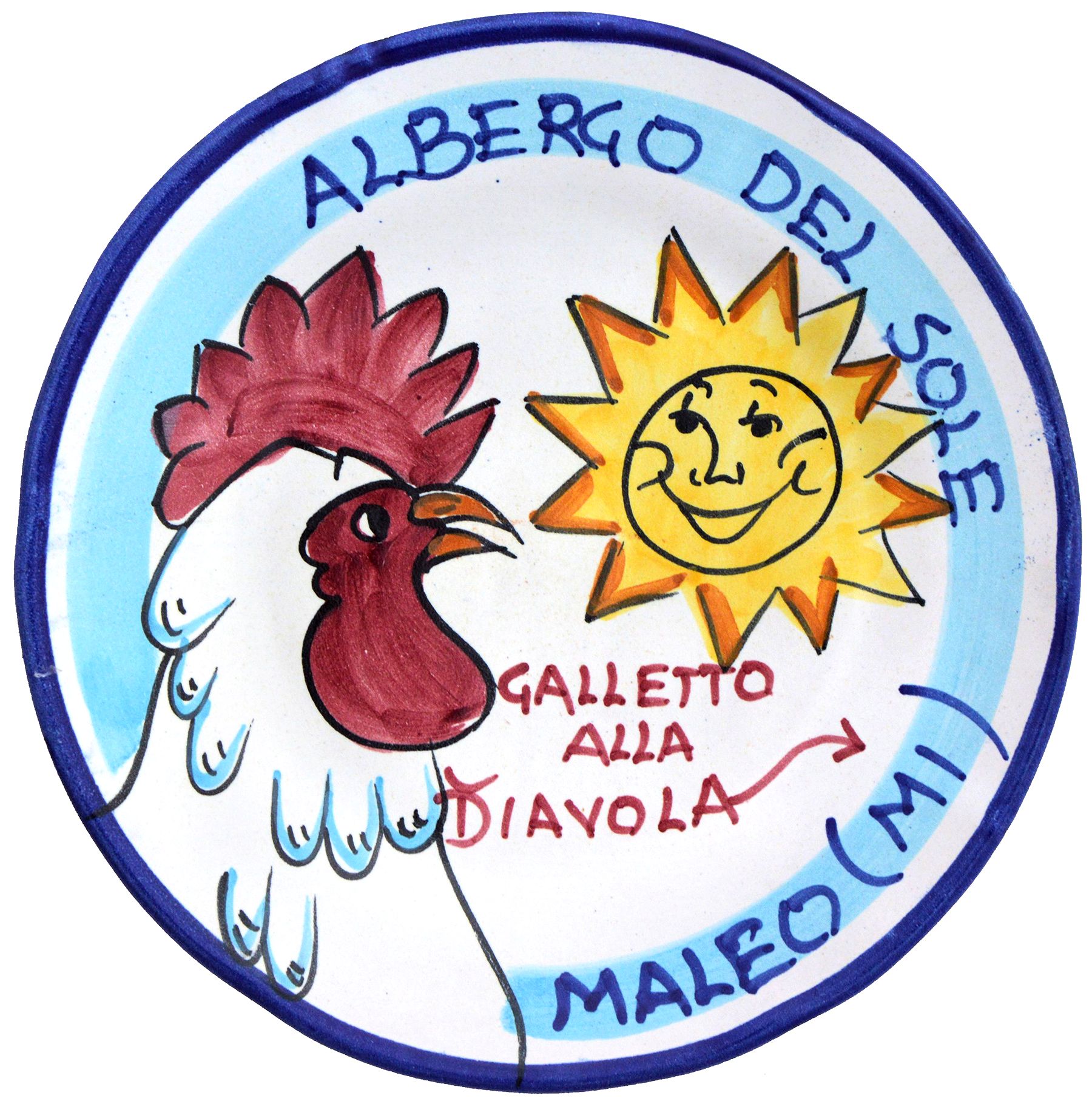 * Galletto alla diavola (2° con LO) set. 98 - dic. 24 Questo piatto è stato emesso a seguito del cambiamento di provincia da Milano a Lodi, quindi riporta la scritta (LO). Nei piatti della 1ª emissione del 1998 il sole ha 13 raggi curvati, successivamente il sole è più scuro e con meno raggi.
