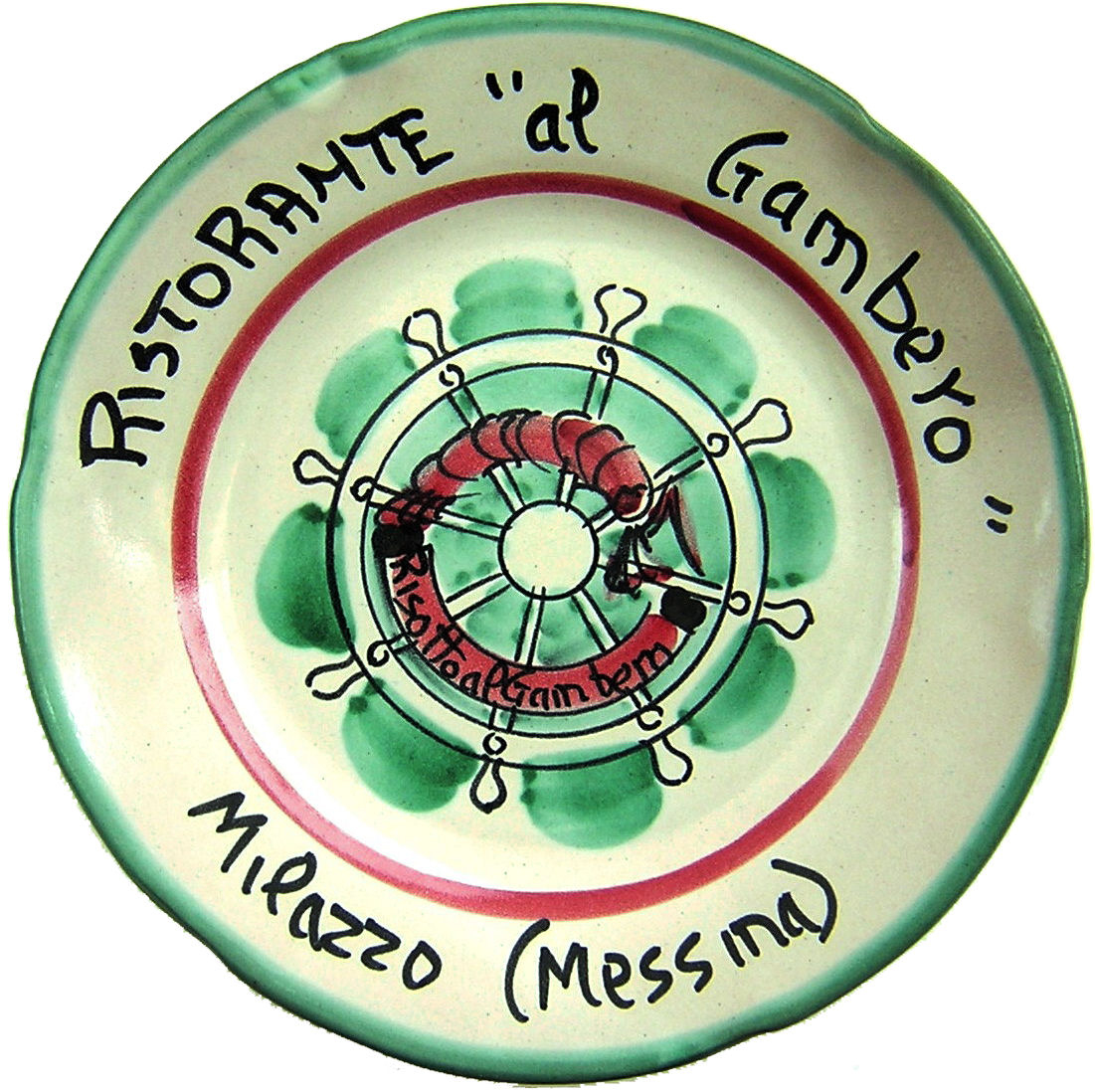 * Risotto al Gambero mar. 74 - nov. 84 Nel piatto di presentazione la scritta specialità è tutta in maiuscolo sotto il timone, la scritta ristorante "al gambero" è tutta in minuscolo e mancano sempre gli 8 circoletti del timone. Esiste una variante con lo sfondo dietro e intorno al timone di colore marrone scuro anziché verde. |