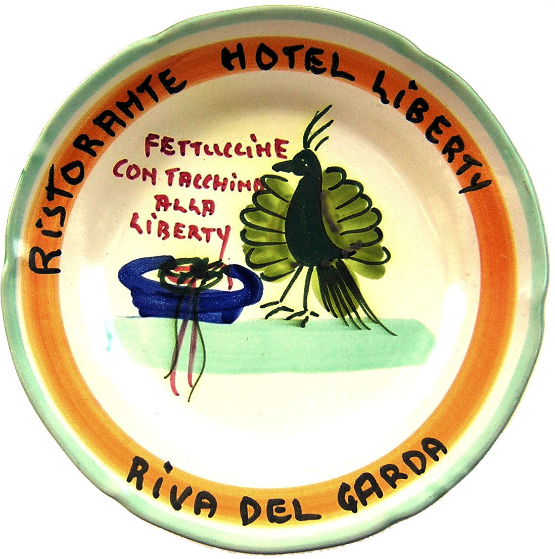 * Fettuccine con tacchino (1° bordo blu) giu. 69 - 1972 I piatti di presentazione, con timbro 3D, hanno la scritta RISTORANTE HOTEL e il tacchino solitamente ben elaborato con 2 piccole penne triangolari in basso. Segue poi una versione con tacchino abbastanza ben disegnato (timbri 3D/5F/8E) con bordi laterali della zuppiera non contornati. Esiste inoltre una versione con la scritta HOTEL RISTORANTE (timbro 5F). Ci sono anche piatti con bordi laterali della zuppiera contornati.